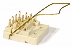 Колодка соединительная для реле РП21-002 тип 1 Колодка соединительная (розетка) для реле РП21-002 тип 1 предназначена для крепления к панели с помощью винтов с задним присоединением внешних проводов пайкой. Используется для установки и крепления реле при внутреннем объёмном монтаже радиоэлектронной аппаратуры общепромышленного назначения. Реле промежуточное РП-21-002 могут комплектоваться следующими типами розеток (колодок): ● тип - розетка для крепления к панели с помощью винтов с задним присоединением внешних проводов пайкой; ● тип 2 - розетка для крепления на рейке с помощью защёлки, с передним присоединением внешних проводов винтовыми зажимами; ● тип 3 - розетка для крепления к панели с помощью винтов, с передним присоединением внешних проводов винтовыми зажимами; ● тип 3а - розетка для крепления на рейке с помощью защёлки либо к панели с помощью винтов, с передним присоединением внешних проводов винтовыми зажимами. Допускает эксплуатацию при температуре окружающей среды от -40 до +55 °С и относительной влажности воздуха 98 % при температуре +35 °С.
