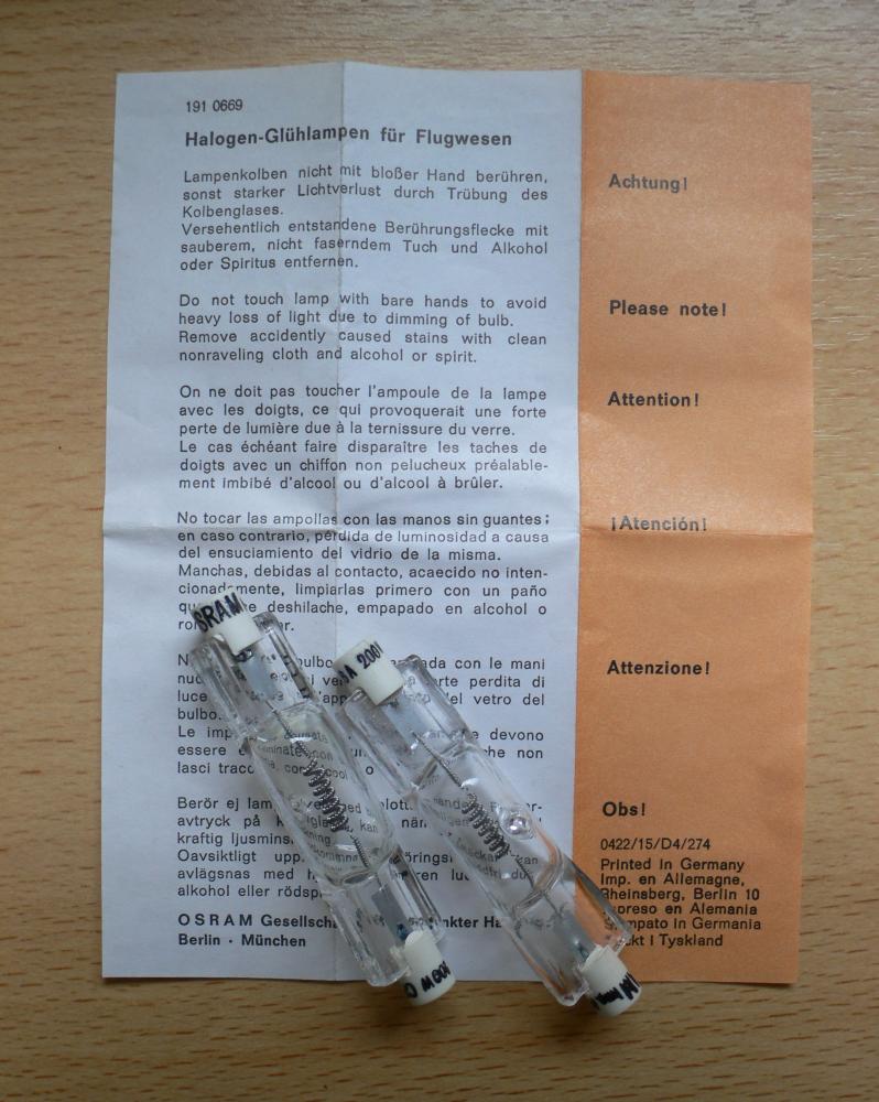 Во избежание травм и материального ущерба галогенные лампы должны использоваться только в подходящих осветительных приборах, конструкция которых (защитные щитки, решетки и прочее) должна предотвращать выпадение частей или осколков при взрыве лампы и проникновение ультрафиолетового излучения наружу. Следует помнить, что при работе лампы сильно выделяют тепло.