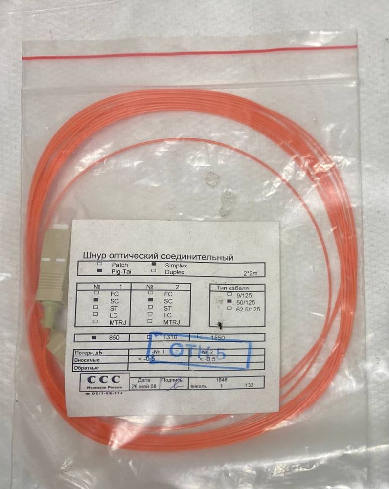 Шнур оптический соединительный Pigtail Simplex 2*2m №1 sc №2 sc 50/125 850