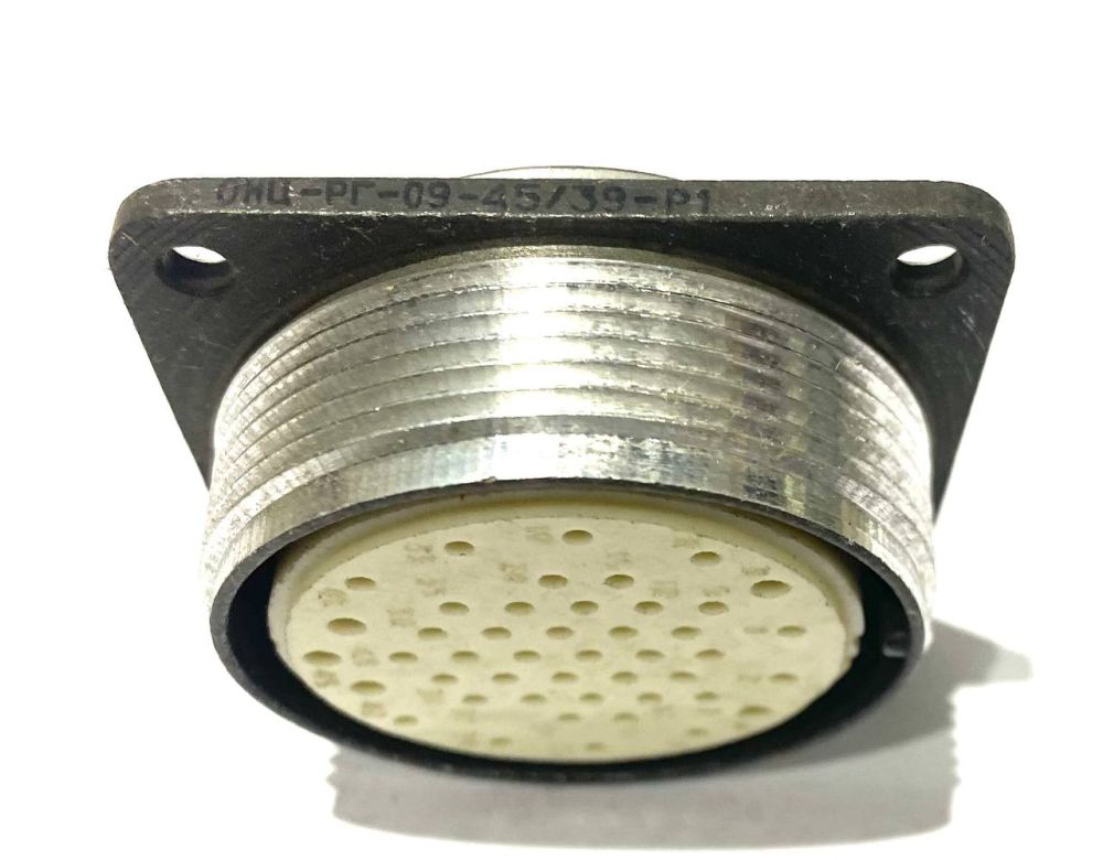 Разъем ОНЦ-РГ-09-45/39-В1. Соединители состоят из двух негерметичных частей: вилки и розетки. Вилки и розетки могут быть как приборными, так и кабельными. Приборная часть соединителей изготавливается без патрубков или с прямыми патрубками, кабельная часть без патрубков, с прямыми или угловыми патрубками. Сочленение соединителей резьбовое, поляризация корпусов - одношпоночная. Покрытие контактов: никель